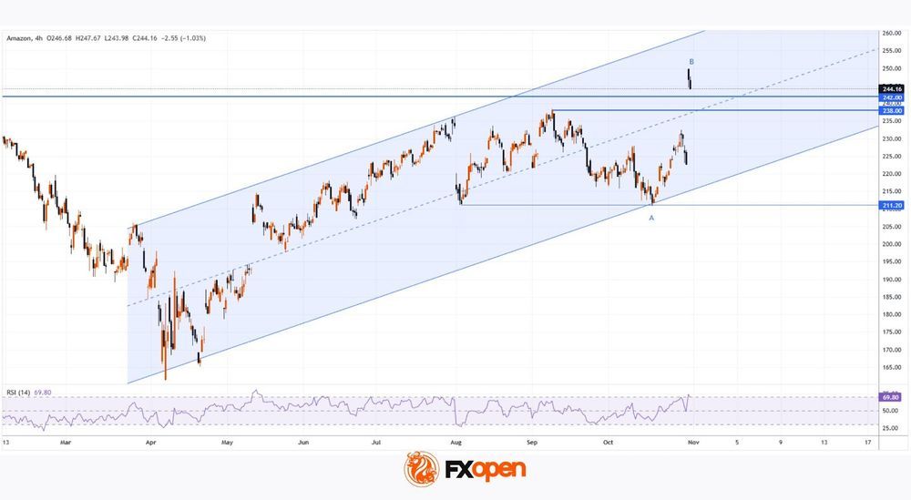 As the chart shows, Amazon (AMZN) shares rose to a record high on Friday, reaching the $250 mark for the first time. This came after the publication of a strong earnings report: